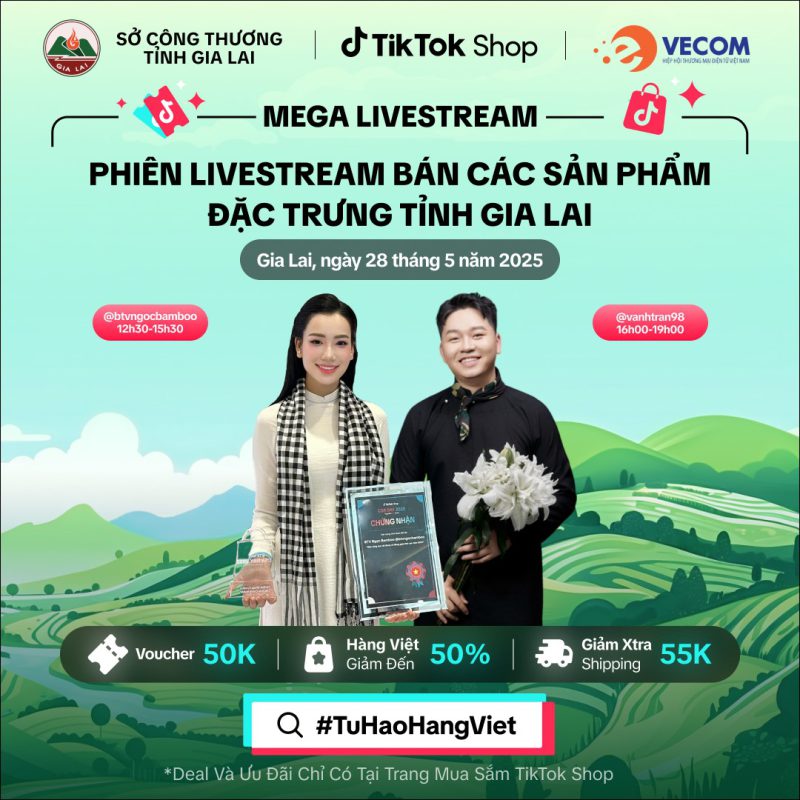 Sự kết hợp hoàn hảo giữa hai Creator tài năng hứa hẹn sẽ đem đến một trải nghiệm livestream đầy hấp dẫn, sinh động và chân thực, giúp bạn khám phá trọn vẹn những giá trị tinh túy của nông sản Gia Lai.